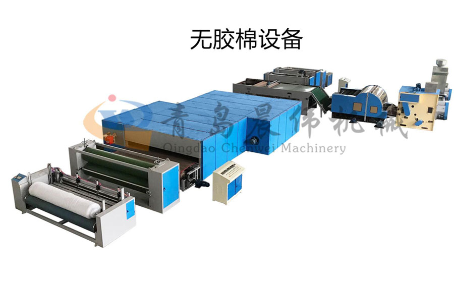 無(wú)膠棉生產(chǎn)線(xiàn)生產(chǎn)的無(wú)膠棉手感柔順、回彈好、透氣性強(qiáng)、耐水洗,主要適用與防寒服裝、睡袋、床上用品沙發(fā)、空氣過(guò)濾等。