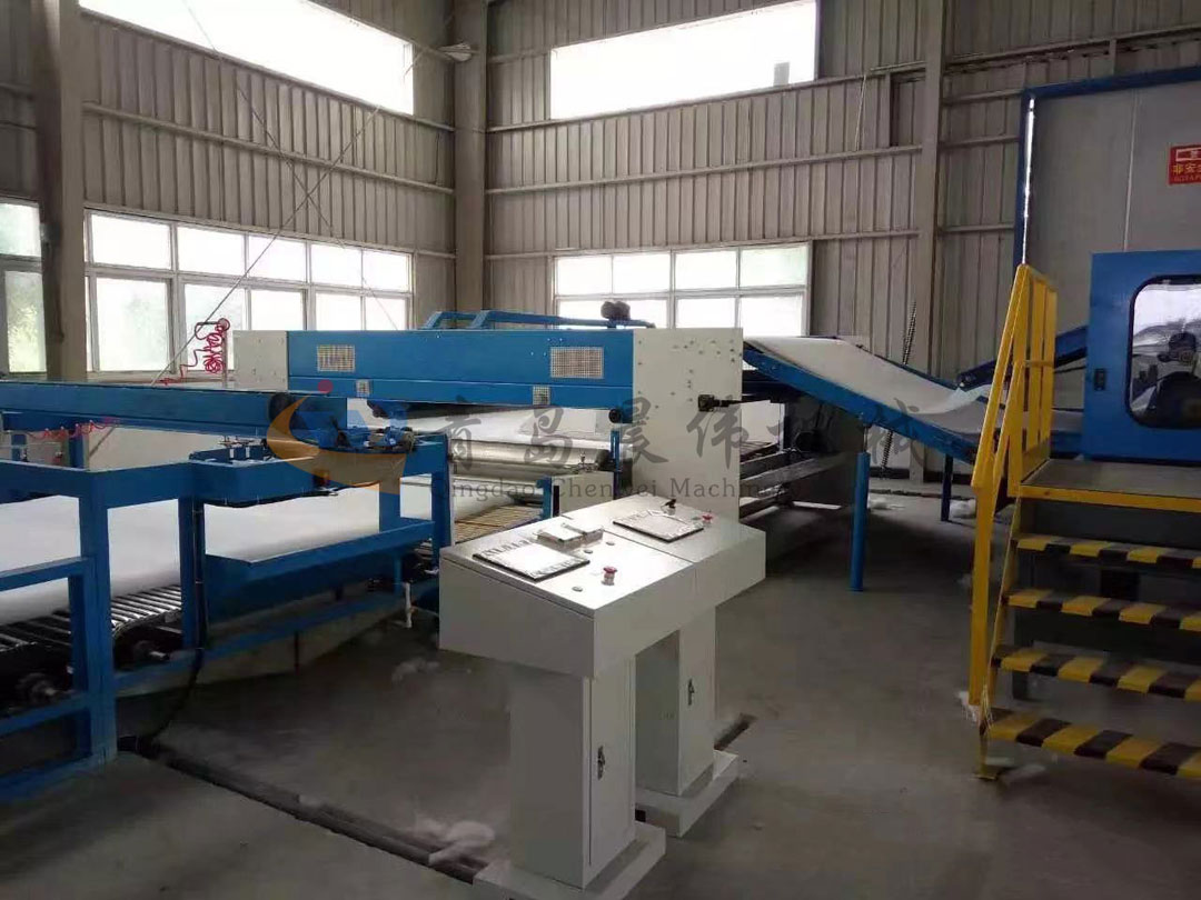 5. CWPW-鋪網(wǎng)機(jī):用于將梳理纖網(wǎng)通過(guò)移動(dòng)小車(chē)交叉折疊為所需幅寬和定量的多層纖網(wǎng),以供后道工序使用。鋪網(wǎng)輥采用特殊結(jié)構(gòu),加裝壓網(wǎng)輥和導(dǎo)流板,不飄網(wǎng)不起皺,五只大功率電機(jī)精確控制各部件的運(yùn)動(dòng),電動(dòng)輸出簾高度調(diào)節(jié)裝置