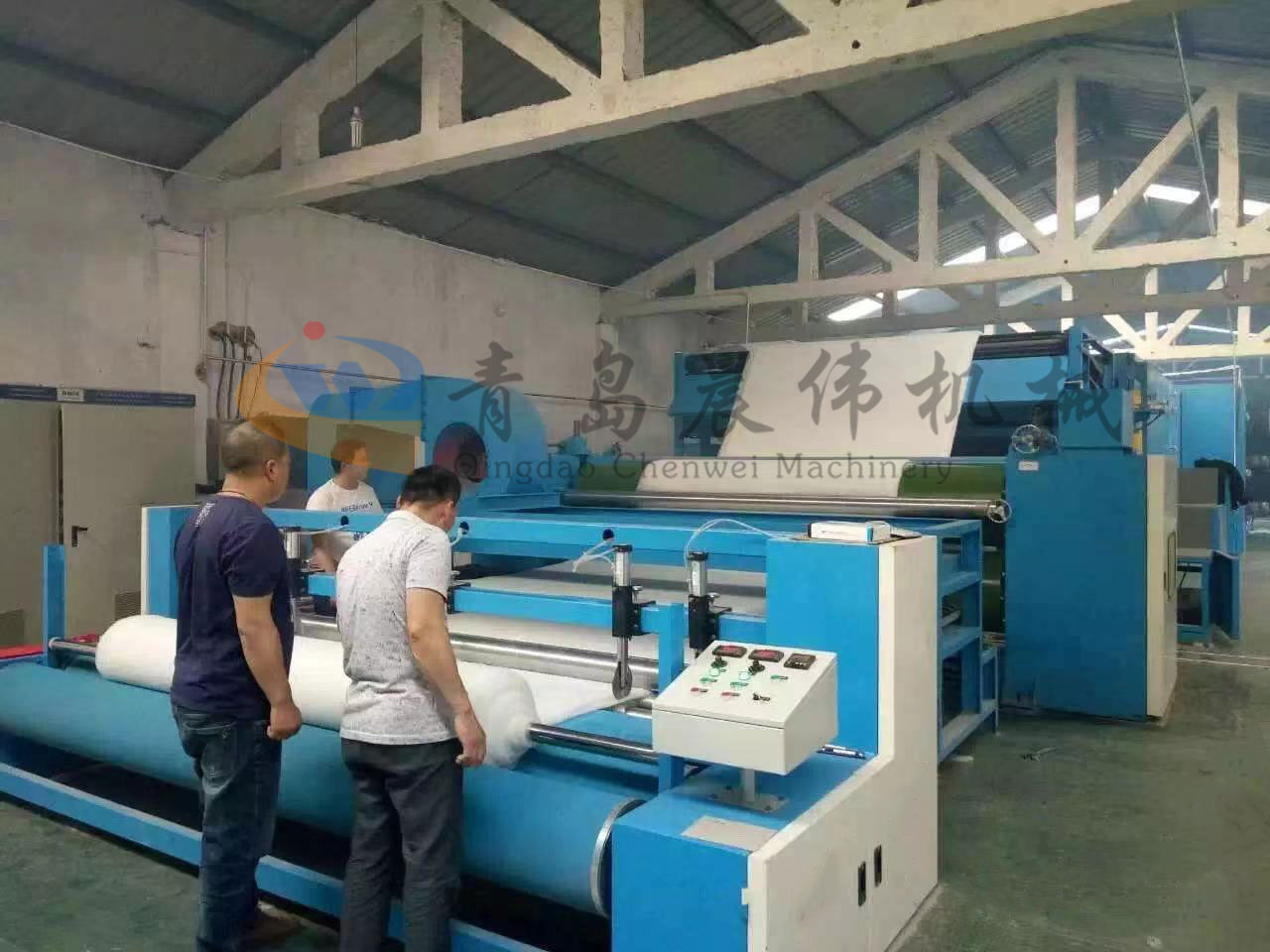 5. CWPW-鋪網(wǎng)機:用于將梳理纖網(wǎng)通過移動小車交叉折疊為所需幅寬和定量的多層纖網(wǎng),以供后道工序使用。鋪網(wǎng)輥采用特殊結構,加裝壓網(wǎng)輥和導流板,不飄網(wǎng)不起皺,五只大功率電機精確控制各部件的運動,電動輸出簾高度調節(jié)裝置。