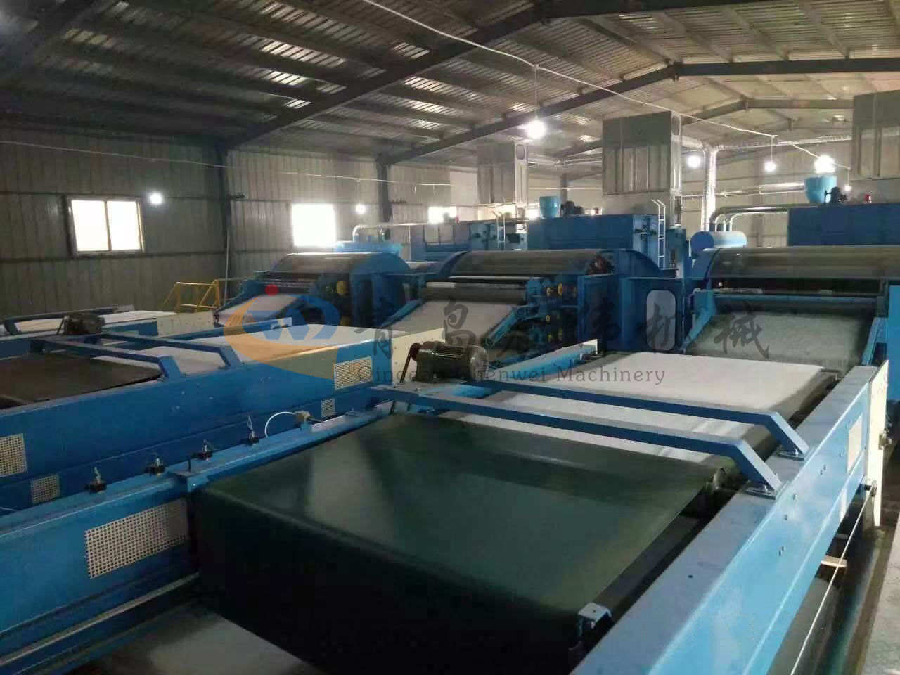 開包機-開松機-振動給棉機-梳理機-鋪網(wǎng)機-烘房-燙光機-成卷切片機