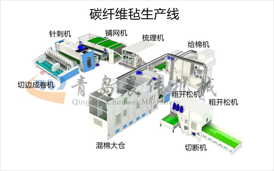 切斷機(jī)-開松機(jī)-振動(dòng)給棉機(jī)-梳理機(jī)-鋪網(wǎng)機(jī)-針刺機(jī)-切邊成卷機(jī)