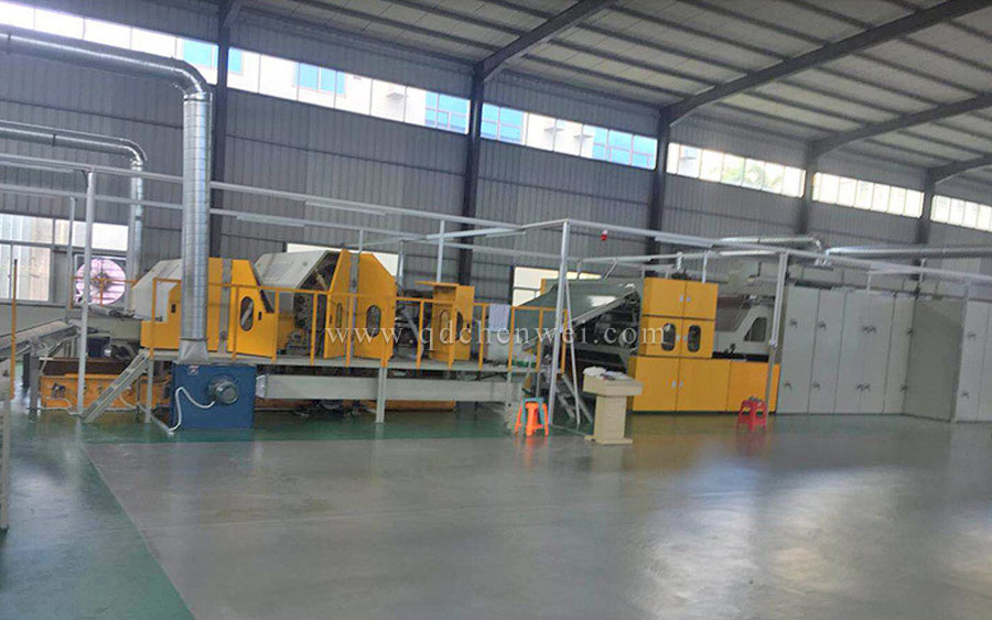 開包機(jī)-開松機(jī)-振動給棉機(jī)-梳理機(jī)-立式鋪網(wǎng)機(jī)-烘房-成卷切片機(jī)